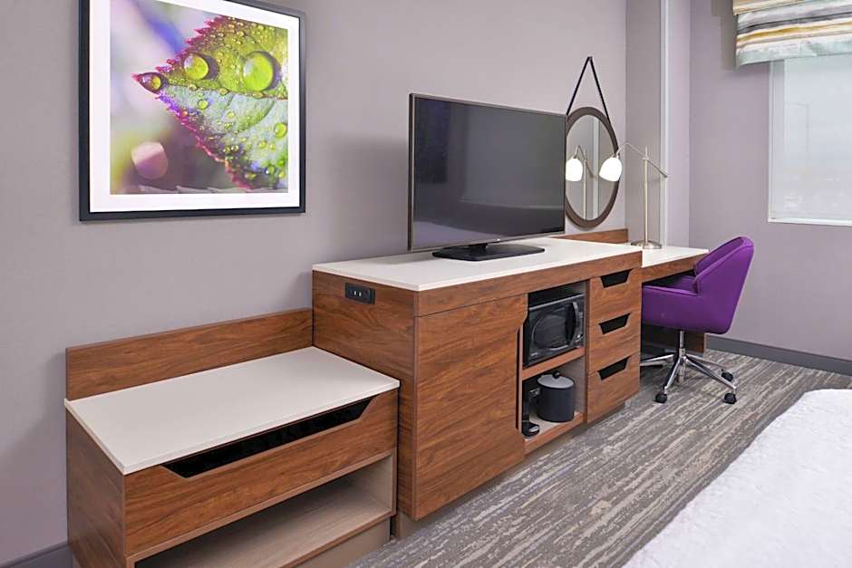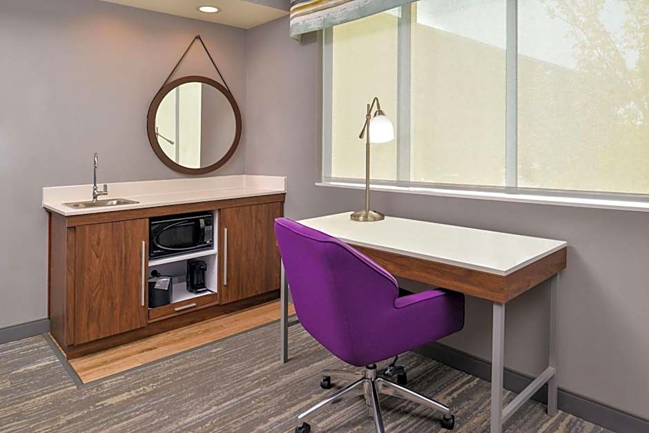37-inch HDTV, free WiFi, sofa bed, wet bar, refrigerator, microwave, large desk, coffeemaker Enjoy the convenient features of this spacious studio suite. Relax watching the 37-inch HDTV or stay on top of business at the desk. Keep up-to-date with free WiFi. Convenient amenities include a wet bar, microwave, mini-refrigerator, and coffemaker. Refresh in the bathroom that includes a shower with curved rod; allowing for more space and light. This room has one king clean and fresh Hampton bed® and a sofa bed.